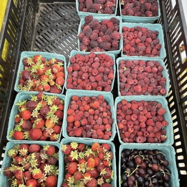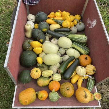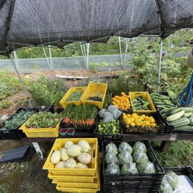 With 9 greenhouses and a germination room, Shelter Farm is able to grow year-round! Some of our most popular fruits and vegetables include plums, apples, strawberries, raspberries, melon, beans, corn, asparagus, chives, rhubarb, zucchini, squash, leeks, beets, parsnips, brussel sprouts, bush beans, pole bears, snow peas, shelling peas, hot peppers, microgreens, salad mix, tomatoes, carrots, kale, lettuce, broccoli, cauliflower, onions, garlic and 3 types of cucumber. We also produce some lesser known vegetables including hakurei turnip (a Japanese variety that requires no cooking!), kohlrabi (part of the cabbage family – great for coleslaw!), nasturtiums (edible flowers), mizuna (Japanese mustard greens) and patty pans (a summer squash). Mmmmm!